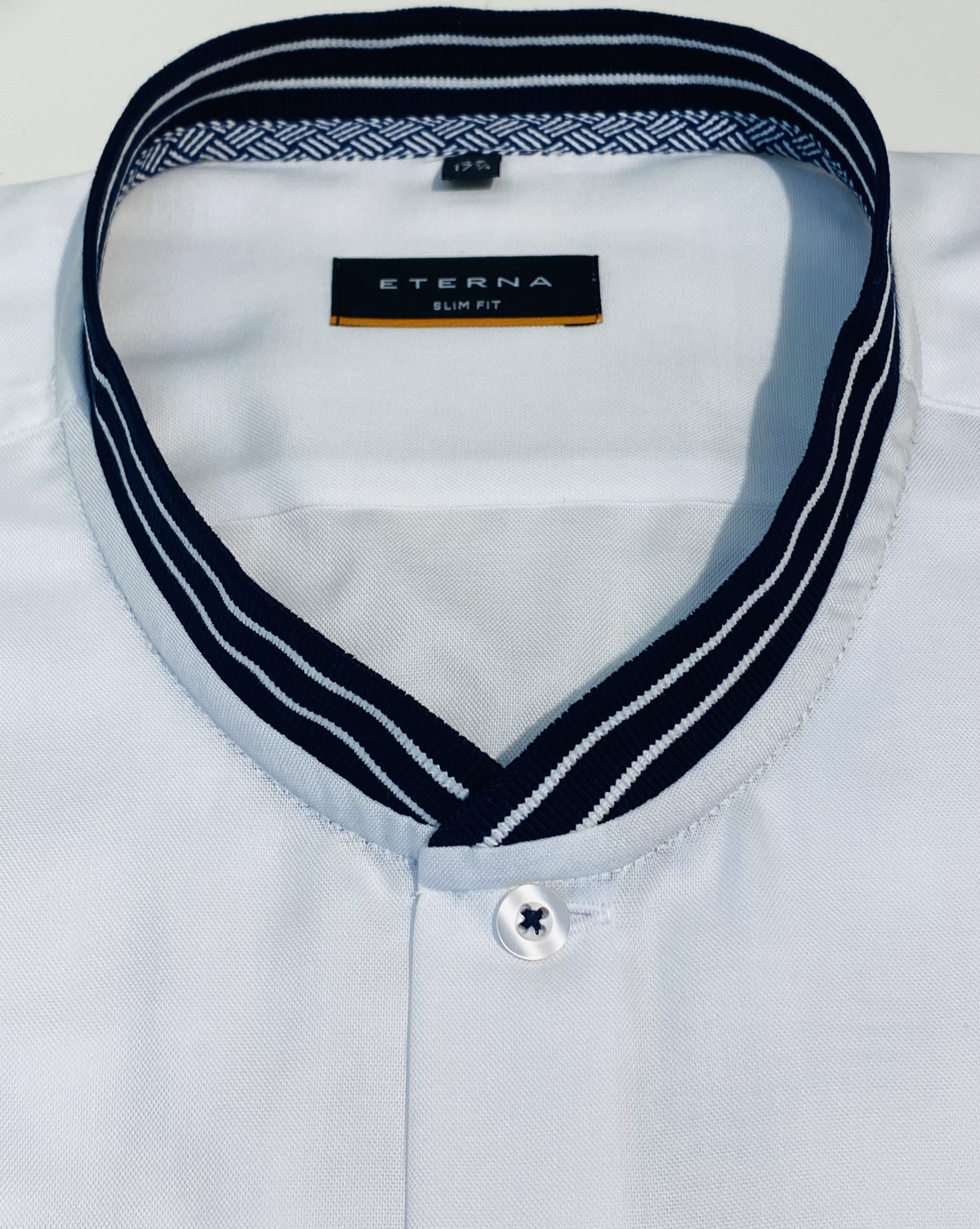 Главная » Товары » Мужские рубашки » Белая приталенная рубашка (Slim Fit) ворот стойка