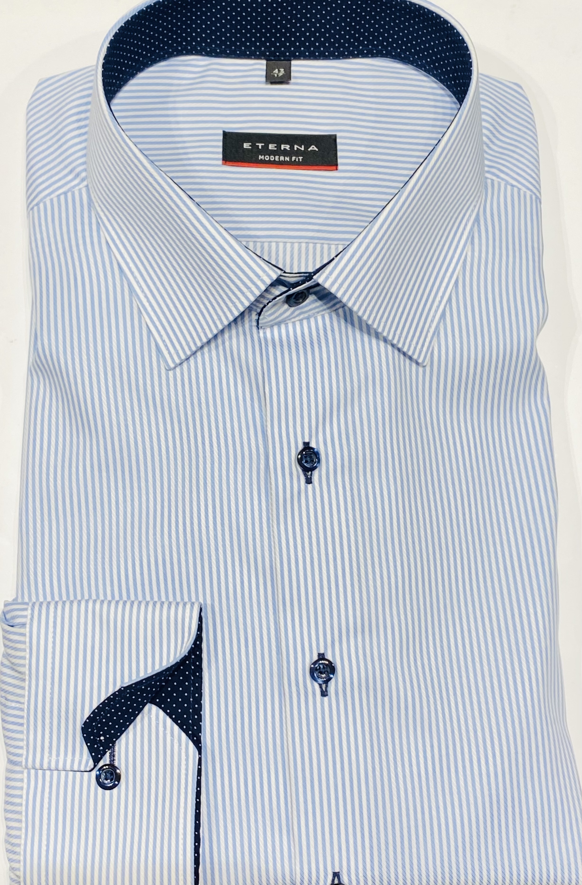 Главная » Товары » Мужские рубашки » Рубашки с длинным рукавом » Белая в голубую полоску рубашка мужская