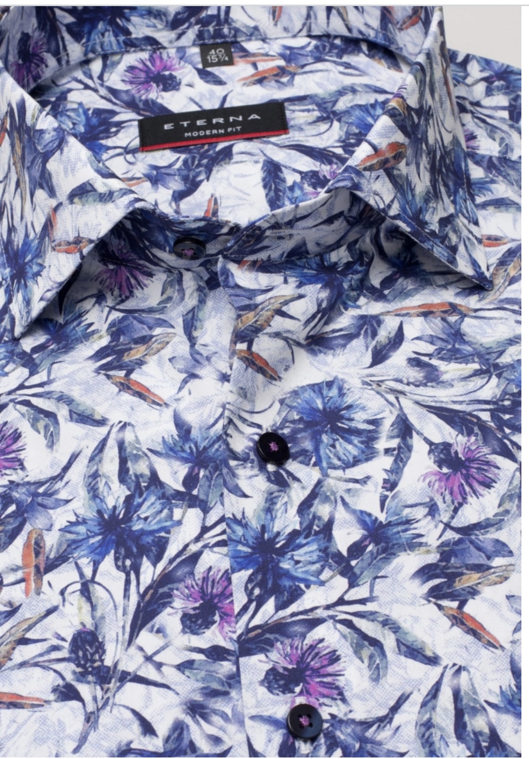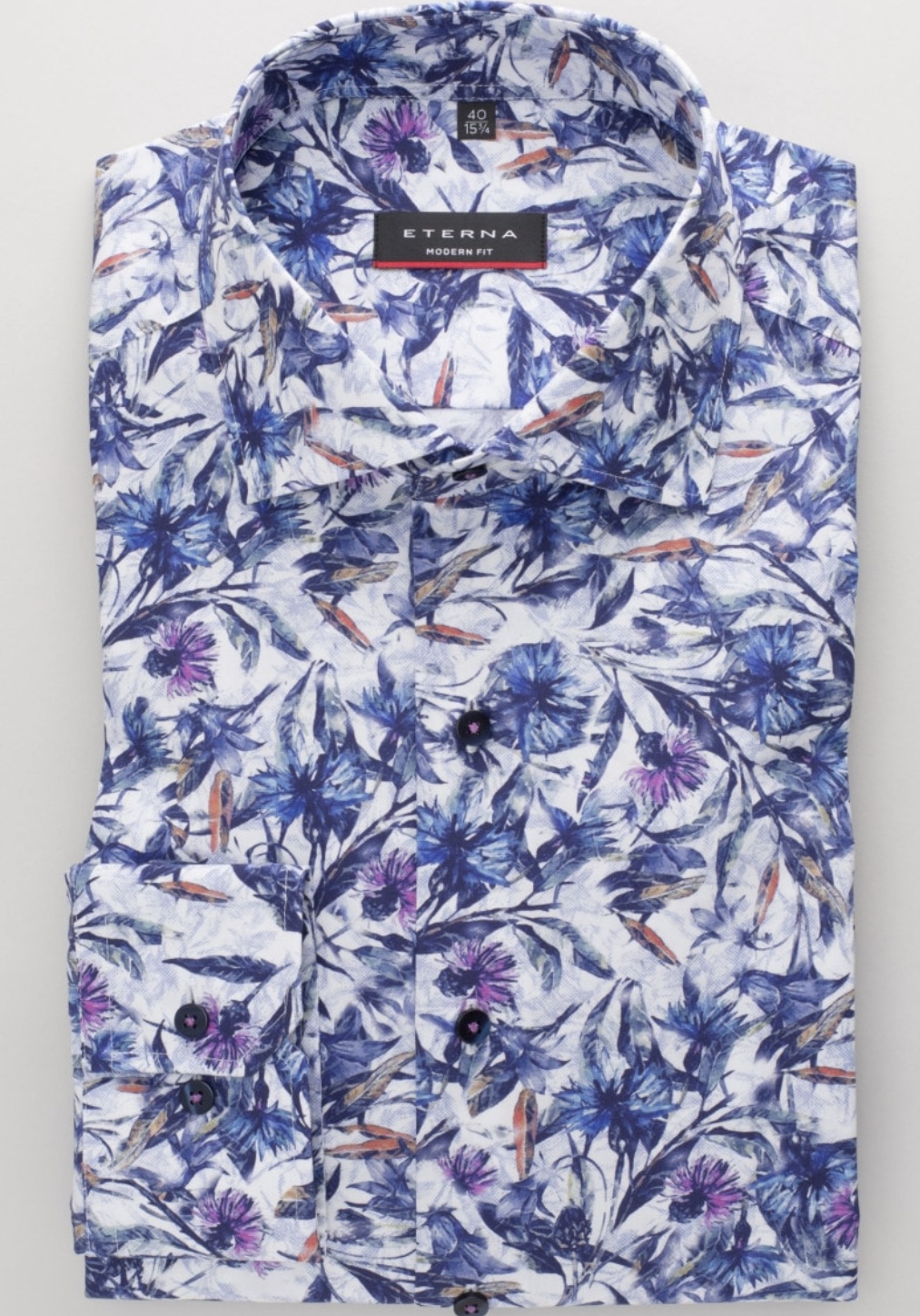 Главная » Товары » Мужские рубашки » Рубашки с длинным рукавом » Мужская рубашка прямого кроя (Modern Fit) белая принт синие цветы с длинным рукавом