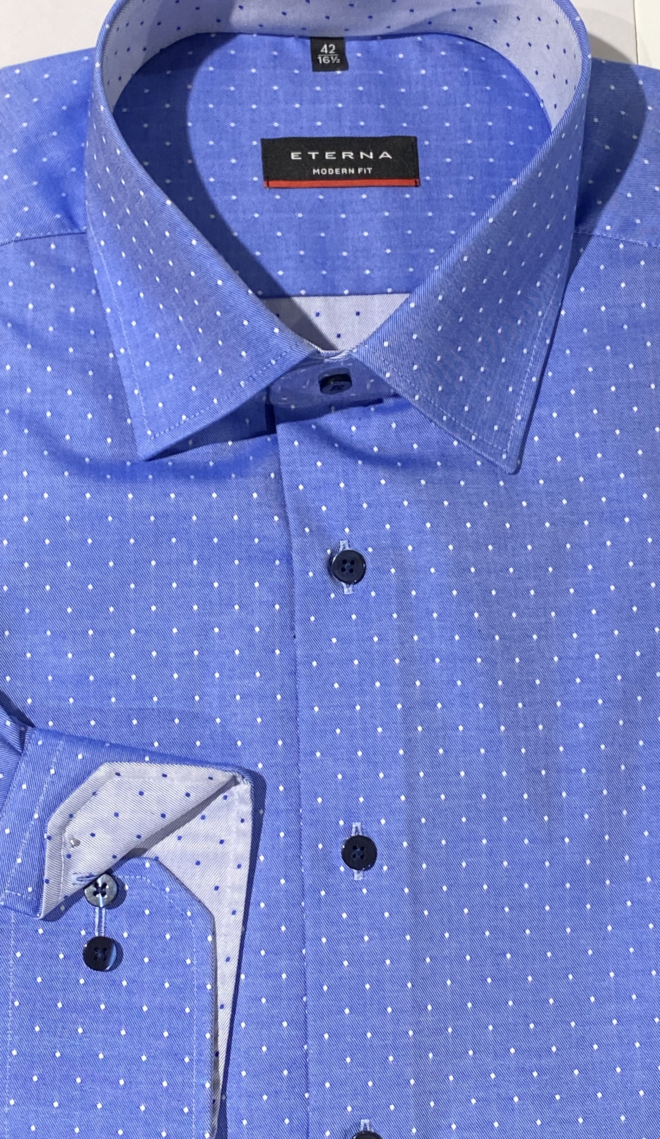 Главная » Товары » Мужские рубашки » Рубашки с длинным рукавом » Рубашка голубая в горох Modern Fit